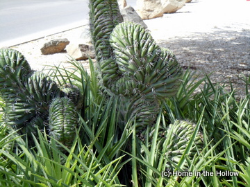 Nestled in between the large rocks, I spotted this cactus while walking to the shops located near the high rises. Isn't it great? Not far down the walkway, there was this large mass of spiny desert plant.