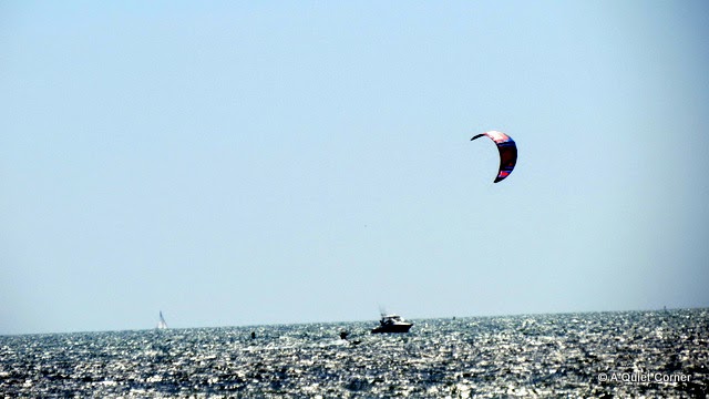 On Monday, we had to attend a wake in Cape Cod and although sympathies went out to the remaining loved ones and friends, we took some time to drive around a little and had a wonderful late lunch before heading to the wake. When I asked the Pres to scoot over to the local beach just to see what it was like, we got to watch some folks enjoy the windy but sunny afternoon.