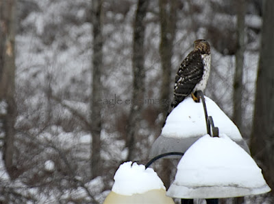 Although I do not like the idea that the area hawks visit my bird feeders, most of the time the birds have already evacuated the premises when one lands close by. Thanks to the vigilance of the many Black-Capped Chickadees, which serve as sentries, most of time the Jays, ground birds, and squirrels are safe.